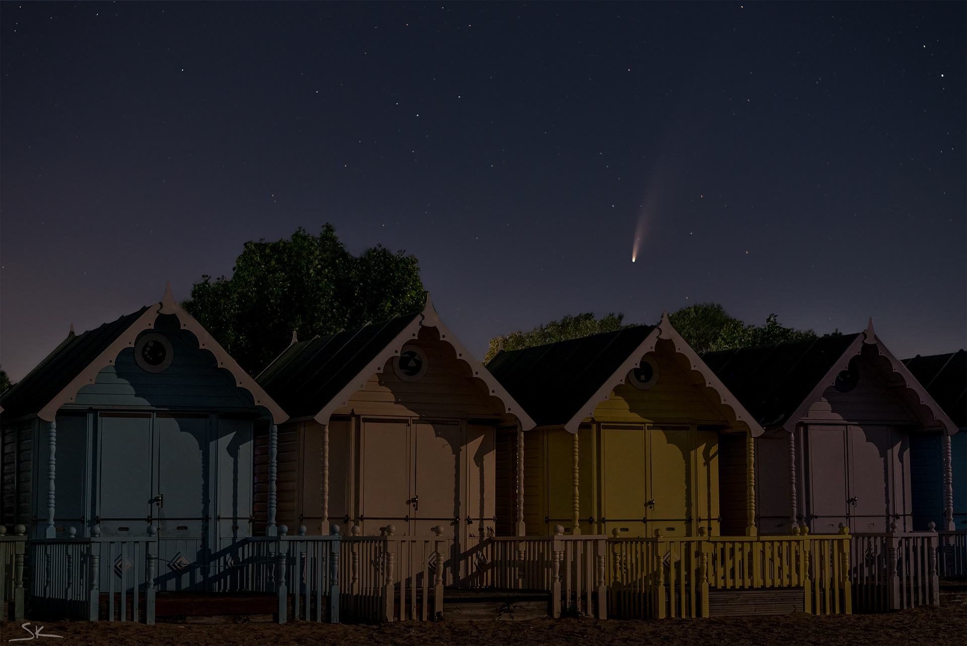Comet Neowise at the West Mersea Beach Huts