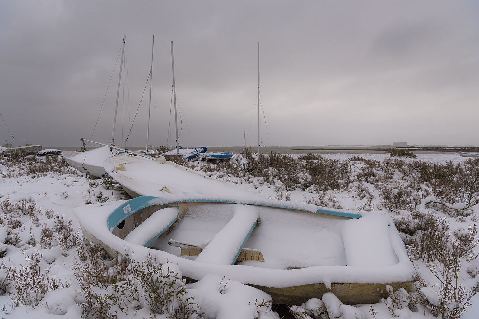 But then little by little the snow flakes came. At first they were small and barely noticeable, steadily growing until large clumps of flakes silently fell in swirls and torrents. Soon enought the varied colours of Mersea Island had been transformed, whitewashed, by a magical winterscape of fresh fluffy snow.