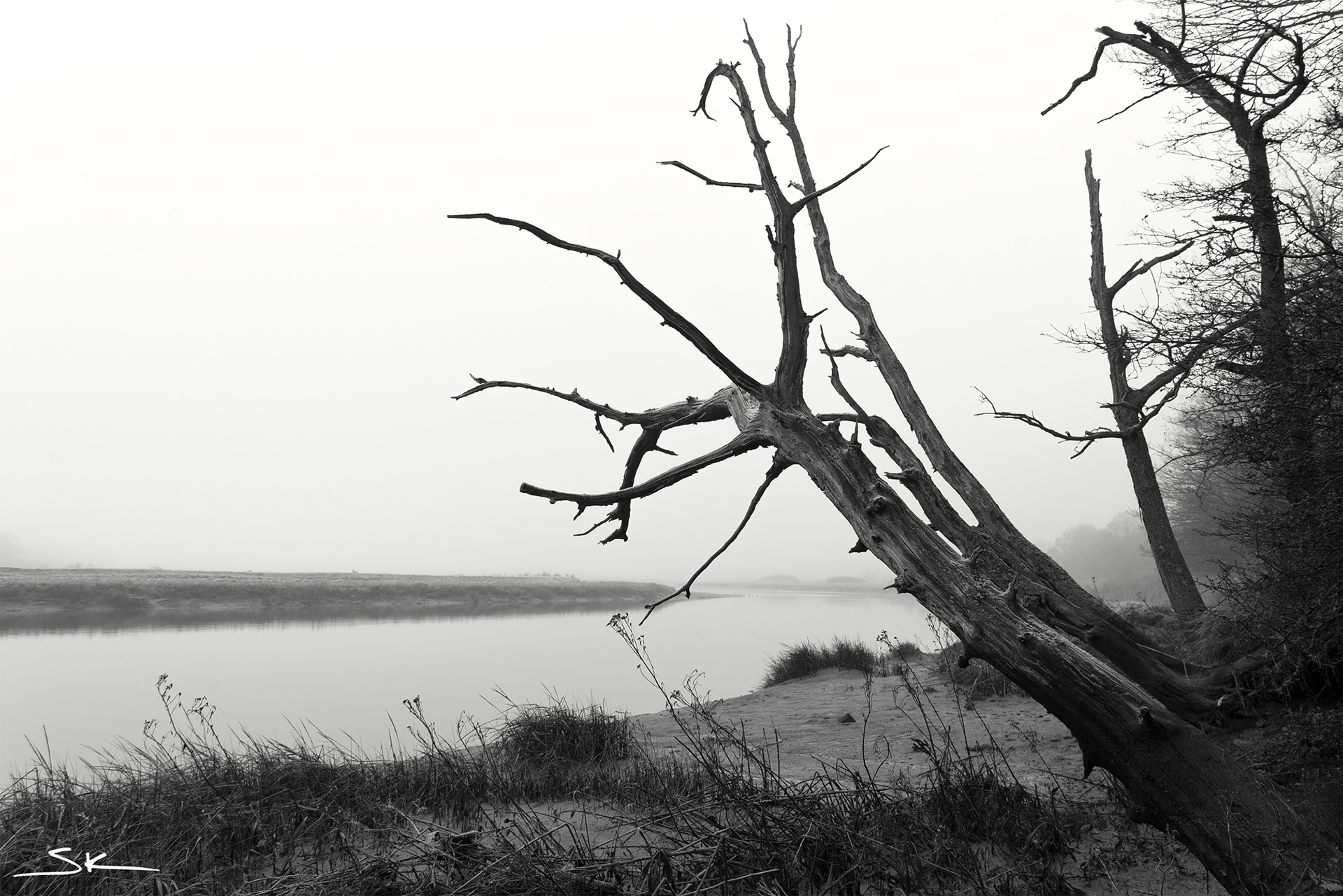 These dead trees caught my eye on the way back to Colchester this Sunday morning, whilst walking along the Wivenhoe Trail, the starkness of the misty background contrasted well with the detail of the tree trunks.